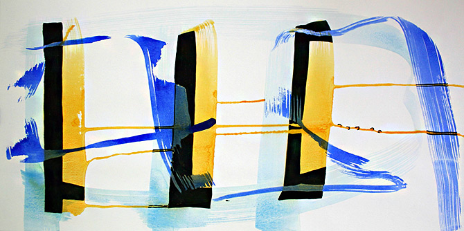 Blau auf dem Sprung I, 2014, Acryl auf Papier, 30 x 60 cm