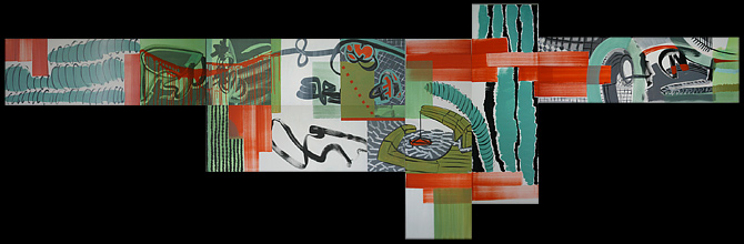 Passagen I, zurück und vor, 2009, Acryl auf Leinwand, 200 x 550 cm, 6teilig