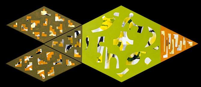 Raute an Raute, Ensemble Nr. 7, 2017, Acryl auf Leinwand, 100 x 250 cm, 3-teilig